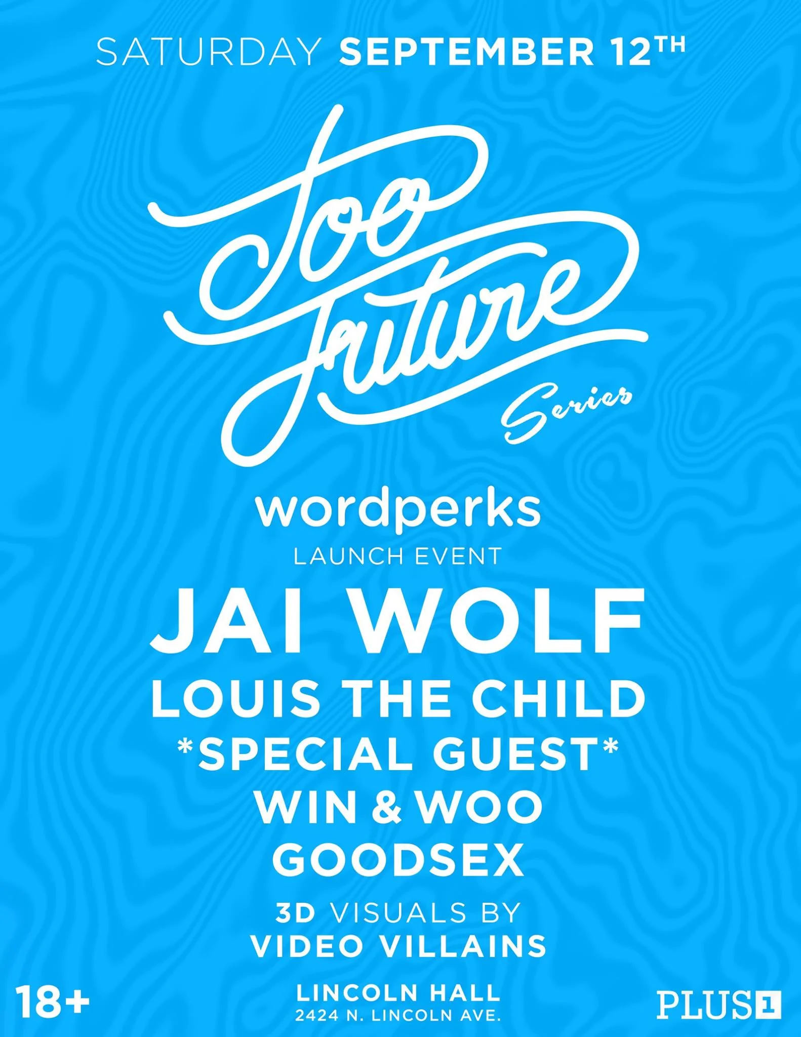 Wordperks, an app where you can buy products and services by posting about them to social media, is launching and - to get the word out - throwing an event at Lincoln Hall. At this "Too Future Series" event you’ll see live performances by some of the biggest up-and-coming electronic artists including Jai Wolf, Louis The Child, Win & Woo, Goodsex, and a very special guest. You’ll also get a chance to meet artists, entrepreneurs, and influential creators from the Chicagoland area. And if that isn’t enough, The Video Villains are coming to blow your mind with their live 3D visual production.
