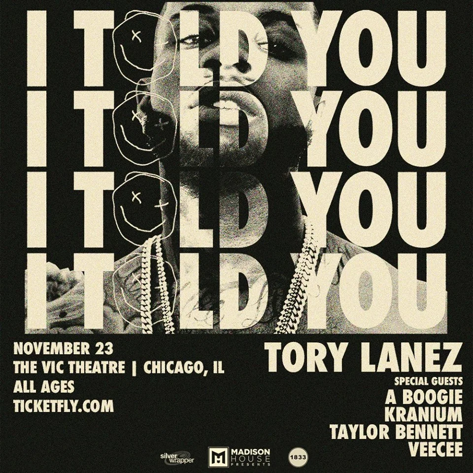 Nov. 23: Tory Lanez Wednesday, November 23, 2016 9:00 PM 21:00 Thursday, November 24, 2016 2:00 AM 02:00 The Vic 3145 North Sheffield Avenue Chicago, IL, 60657 United States (map) Google Calendar ICS All Ages // Doors 7PMAdditional Performers:A BoogieKraniumTaylor BennettVeecee Buy Tickets