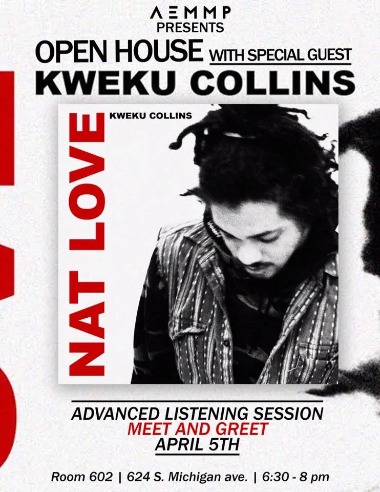 April 5: Kweku Collins • Meet and Greet + Advanced Listening Session Tuesday, April 5, 2016 6:30 PM 8:00 PM 18:30 20:00 Room 602 624 S. Michigan Ave Chicago, IL (map) Google Calendar ICS View fullsize Meet & Greet: 6:30PM-8:00PMAEMMP Presents: Open House with Kweku CollinsMeet and Greet + Advanced Listening Session