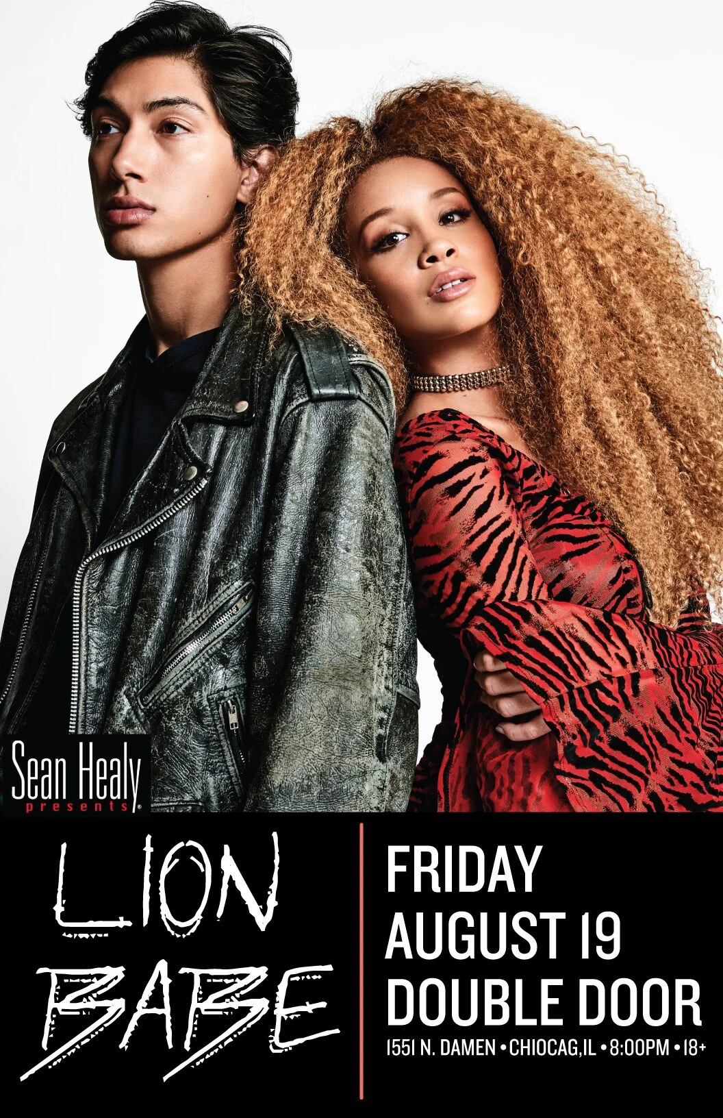 August 19: Lion Babe Friday, August 19, 2016 8:00 PM 11:59 PM 20:00 23:59 Double Door 1572 N Milwaukee Ave Chicago, IL (map) Google Calendar ICS View fullsize Doors: 8:00PM | $18.00 / $28 (Balcony VIP) / $40 (Seated VIP) | 18+Sean Healy Presents BUY TICKETS View fullsize