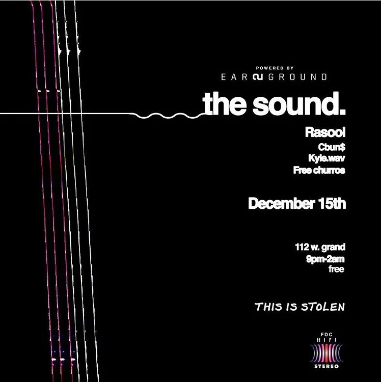 Dec. 15: the sound. feat. Rasool, Cbun$, Kyle.wav Thursday, December 15, 2016 9:00 PM 11:59 PM 21:00 23:59 112 W. Grand Ave Chicago, IL (map) Google Calendar ICS View fullsize Doors: 9:00PM | Freethe sound. feat. Rasool, Cbun$, Kyle.wavPowered by Ear2Ground