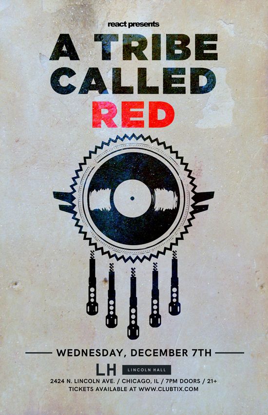 Dec. 7: A Tribe Called Red Wednesday, December 7, 2016 7:00 PM 11:59 PM 19:00 23:59 Lincoln Hall 2424 N. Lincoln Ave Chicago, IL (map) Google Calendar ICS View fullsize Doors: 7:00PM | $13-15.00 | 21+A Tribe Called RedReact Presents BUY TICKETS