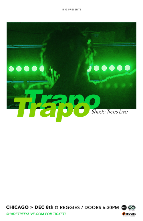 Dec. 8: Trapo Thursday, December 8, 2016 6:30 PM 11:30 PM 18:30 23:30 Reggies 2105 S State St. Chicago, IL (map) Google Calendar ICS View fullsize Doors: 6:30PM | $13.00 | All AgesTrapo • Shade Trees Live1833 Presents BUY TICKETS