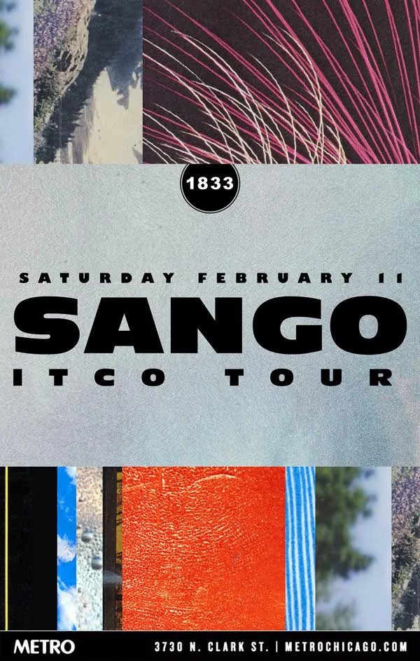Feb. 11: Sango Saturday, February 11, 2017 8:00 PM 11:30 PM 20:00 23:30 Metro 3730 N. Clark St. Chicago, IL (map) Google Calendar ICS View fullsize Doors: 8:00PM | $17.00 | 18+Sango • ITCO Tour1833 Presents BUY TICKETS
