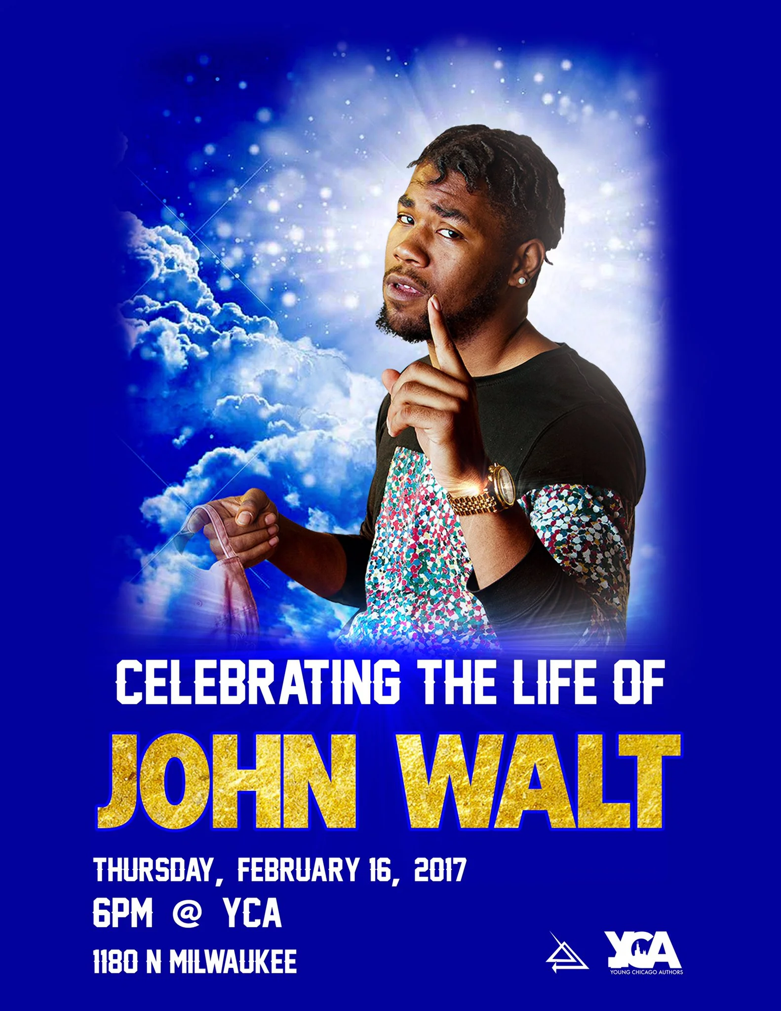Feb. 16: Celebrating The Life of John Walt Thursday, February 16, 2017 6:00 PM 9:00 PM 18:00 21:00 Young Chicago Authors 1180 N. Milwaukee Ave Chicago, IL (map) Google Calendar ICS Celebration 6:00PM | All AgesCelebrating The Life of John Walt @ Young Chicago Authors