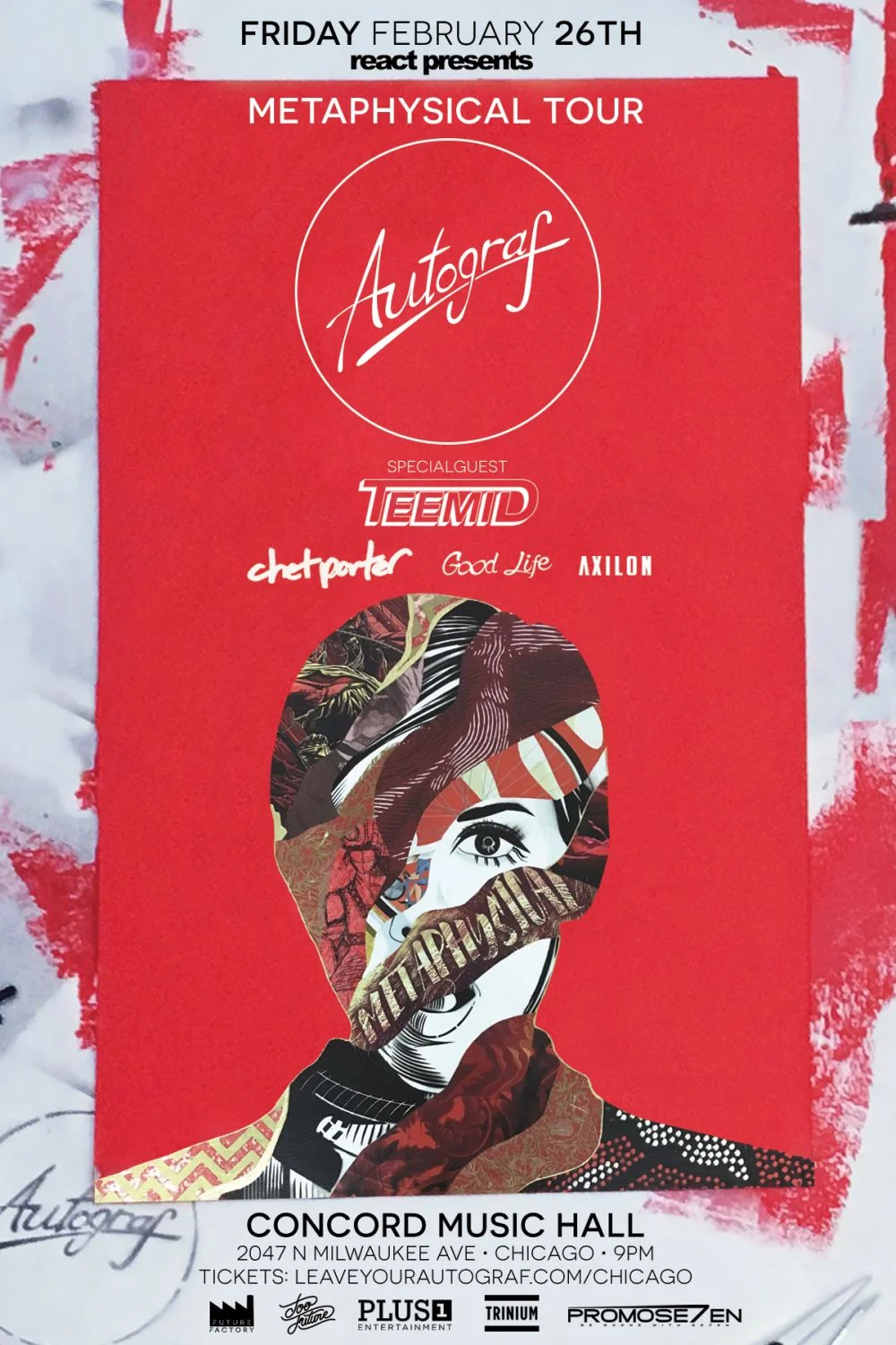 Feb. 26: Autograf Friday, February 26, 2016 9:00 PM 11:59 PM 21:00 23:59 Concord Music Hall 2047 N. Milwaukee Ave. Chicago, IL (map) Google Calendar ICS View fullsize Doors: 9:00PM | $15.00 | 18+Autograf's 'Metaphysical Tour'with Teemid, Chet Porter, Good Life and AXILONReact Presents BUY TICKETS