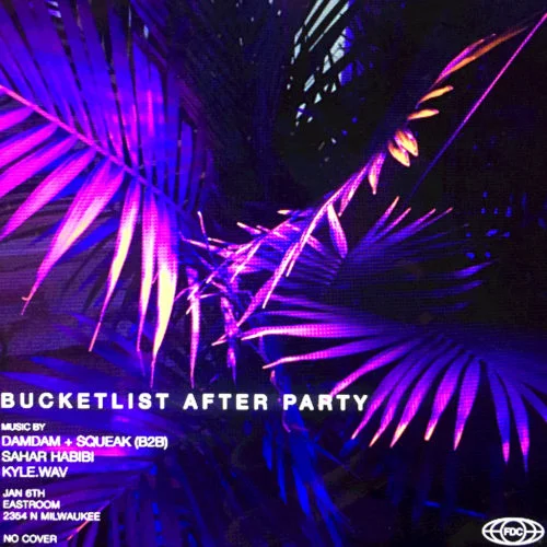 Jan. 6: Saba Bucketlist After Party with DAMDAM, SQUEAK, Sahar Habibi, KYLE.WAV Friday, January 6, 2017 9:00 PM 11:59 PM 21:00 23:59 East Room 2354 N Milwaukee Ave. Chicago, IL (map) Google Calendar ICS View fullsize Doors: 9:00PM | No Cover | 21+Saba Bucketlist After Partywith DAMDAM, SQUEAK, Sahar Habibi, KYLE.WAV MORE INFO