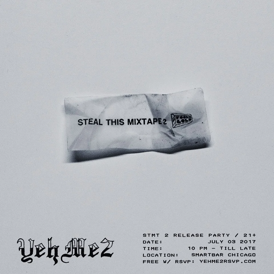 July 3: YehMe2 (Steal This Mixtape 2 Release Party) Monday, July 3, 2017 10:00 PM 11:59 PM 22:00 23:59 Smart Bar 3730 N Clark St Chicago, IL (map) Google Calendar ICS Doors: 10:00PM | Free with RSVP | 21+July 3: YehMe2 (Steal This Mixtape 2 Release Party) FREE WITH RSVP
