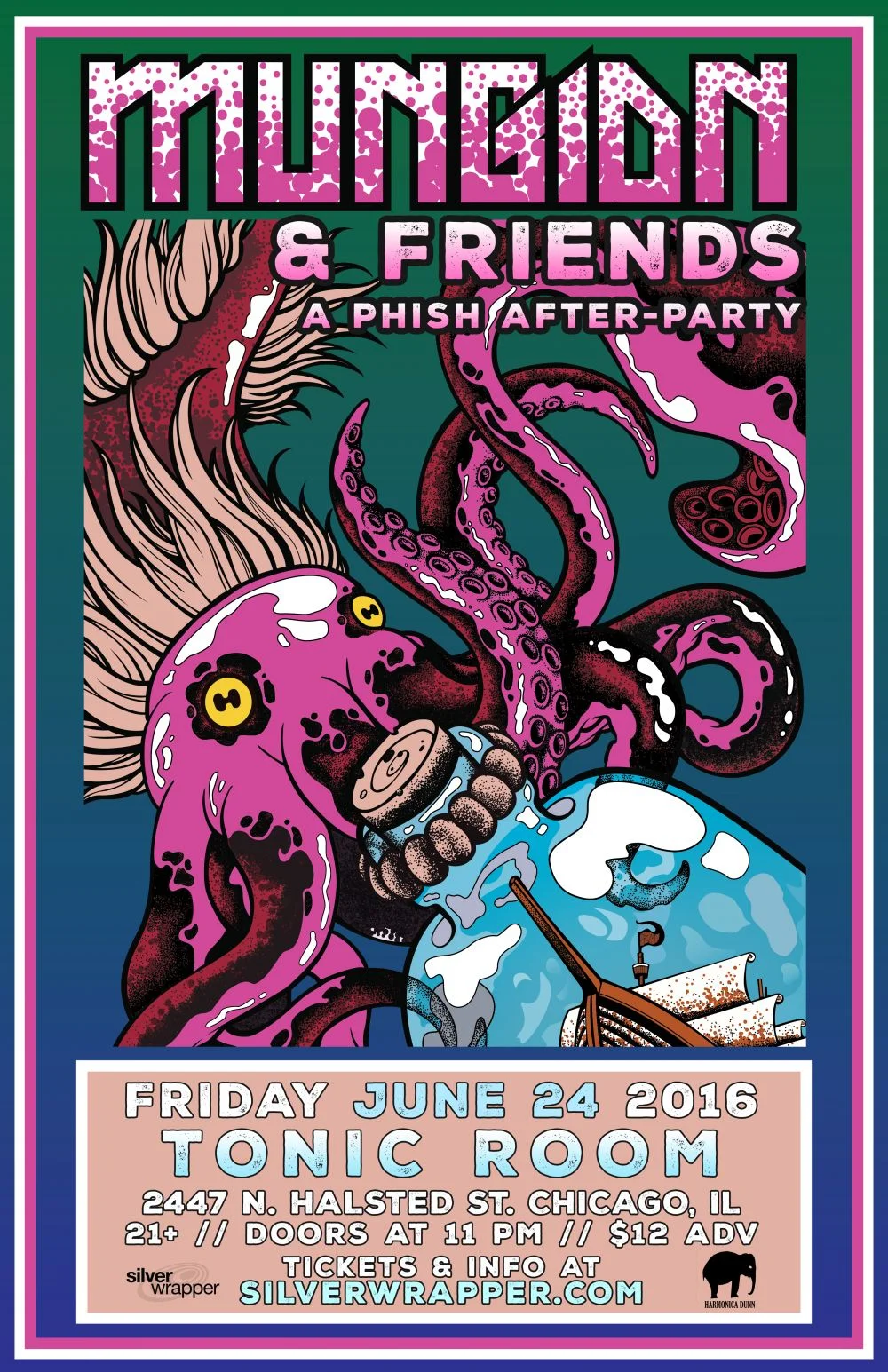 June 24: Mungion & Friends Friday, June 24, 2016 11:00 PM 11:59 PM 23:00 23:59 Tonic Room 2447 North Halsted St Chicago, IL (map) Google Calendar ICS View fullsize Doors: 11:00M | $12.00 | 21+Silver Wrapper Presents: Mungion & FriendsA Phish After-Party BUY TICKETS