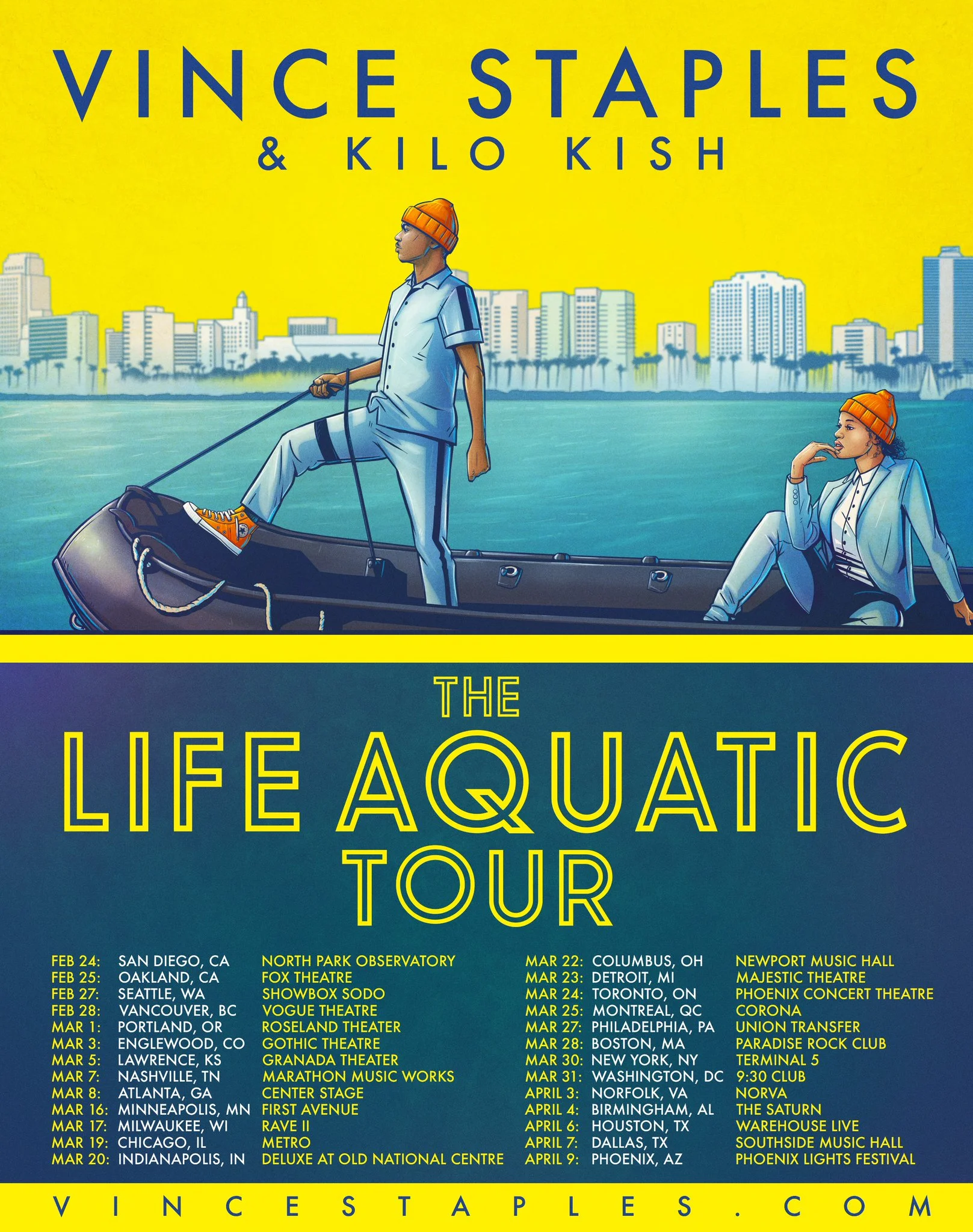 March 19: Vince Staples & Kilo Kish [The Life Aquatic Tour] Sunday, March 19, 2017 8:00 PM 11:30 PM 20:00 23:30 Metro 3730 N Clark St. Chicago, IL (map) Google Calendar ICS View fullsize Doors: 8:00PM | $TBD | All AgesVince Staples & Kilo Kish [The Life Aquatic Tour] Tickets On-Sale 12/2