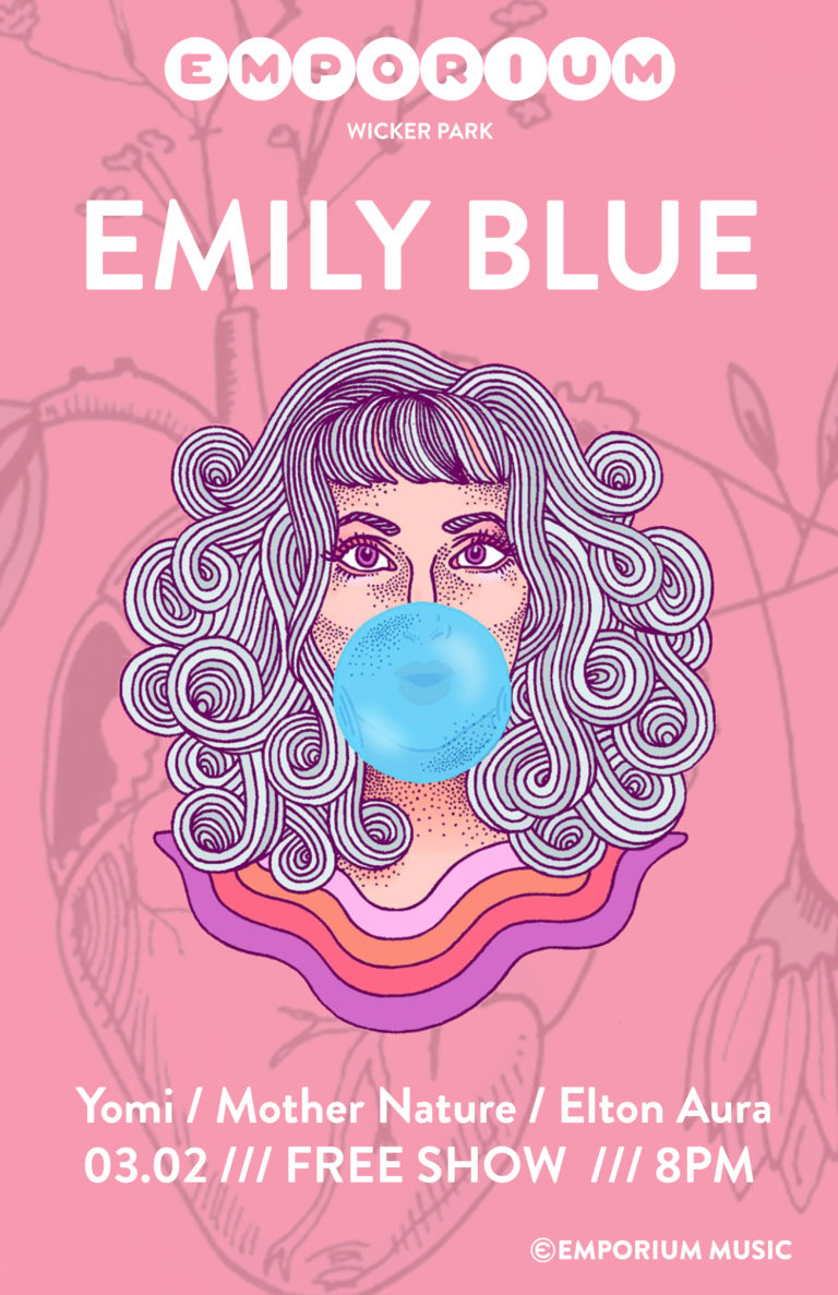 March 2: Emily Blue with Yomi, Mother Nature, Elton Aura Thursday, March 2, 2017 8:00 PM 11:30 PM 20:00 23:30 Emporium 1366 N Milwaukee Ave. Chicago, IL (map) Google Calendar ICS View fullsize Doors: 8:00PM | FREE | 21+Emily Bluewith Yomi, Mother Nature, Elton Aura BUY TICKETS