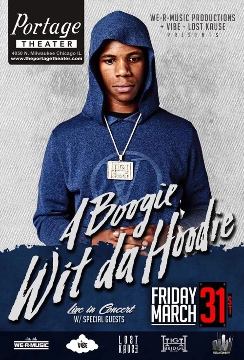 March 31: A-Boogie Wit Da Hoodie Friday, March 31, 2017 7:00 PM 11:30 PM 19:00 23:30 The Portage Theater 4050 N. Milwaukee Chicago, IL (map) Google Calendar ICS View fullsize Doors: 7:00PM | $25.00-70.00 | 17+A-Boogie Wit Da Hoodie • Live In Concertwith Special Guests BUY TICKETS