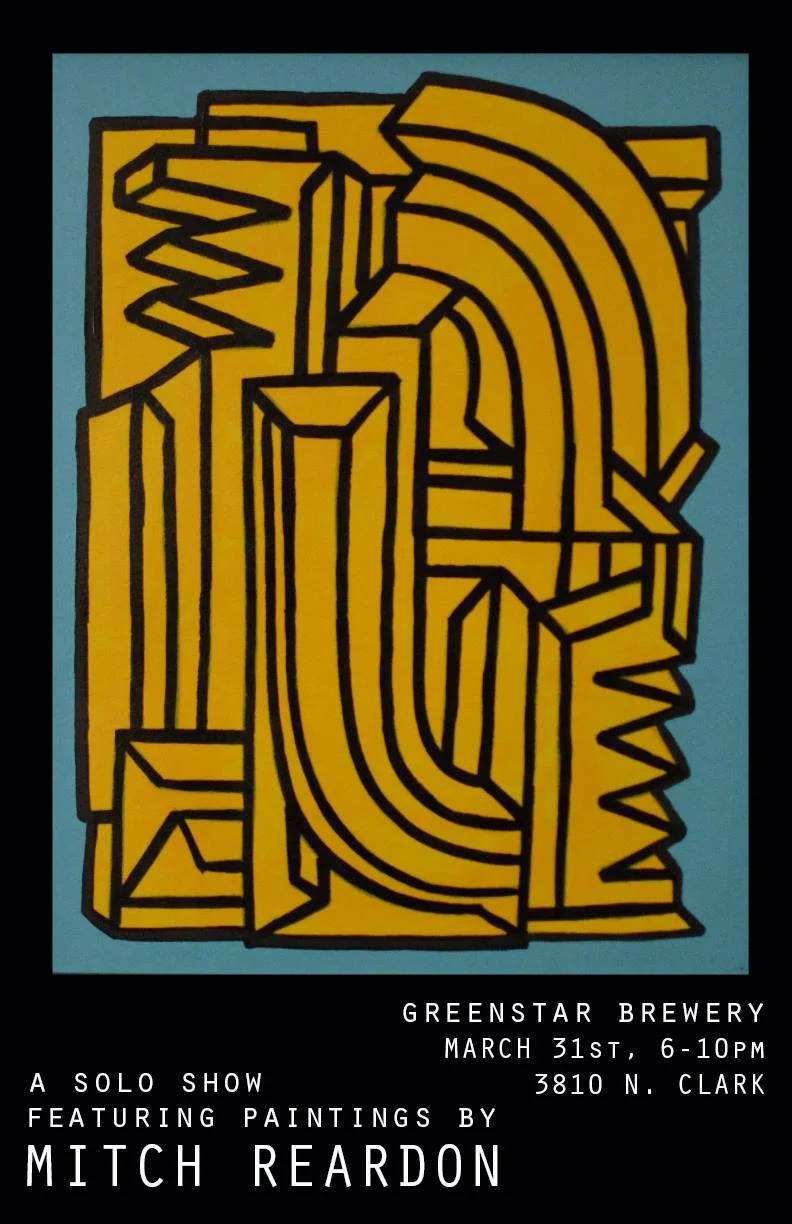 March 31: Mitch Reardon (Solo Art Show) Friday, March 31, 2017 6:00 PM 10:00 PM 18:00 22:00 Greenstar Brewery 3810 N. Clark St. Chicago, IL (map) Google Calendar ICS View fullsize Doors: 6:00PM | No Cover | 21+A Solo Show Featuring Paintings by Mitch Reardon