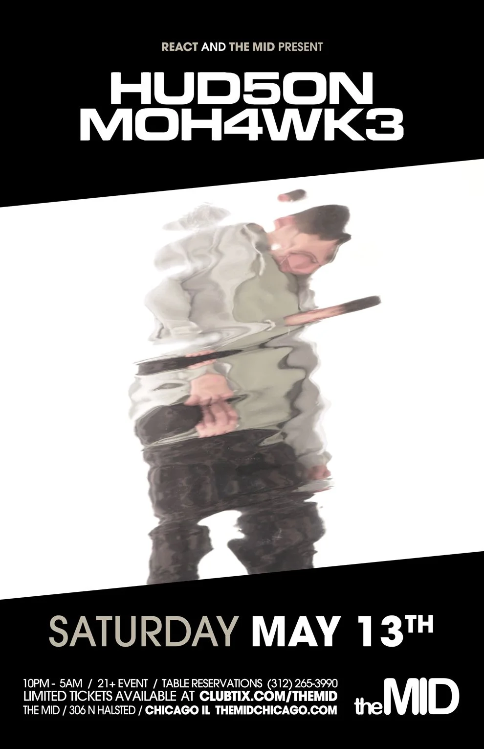 May 13: Hudson Mohawke Saturday, May 13, 2017 10:00 PM 11:59 PM 22:00 23:59 The MID 306 N Halsted St. Chicago, IL (map) Google Calendar ICS View fullsize Doors: 10:00PM | Free with RSVP & Entry before 11:30PM / $20 | 21+React Presents and The MID Present: Hudson Mohawke BUY TICKETS