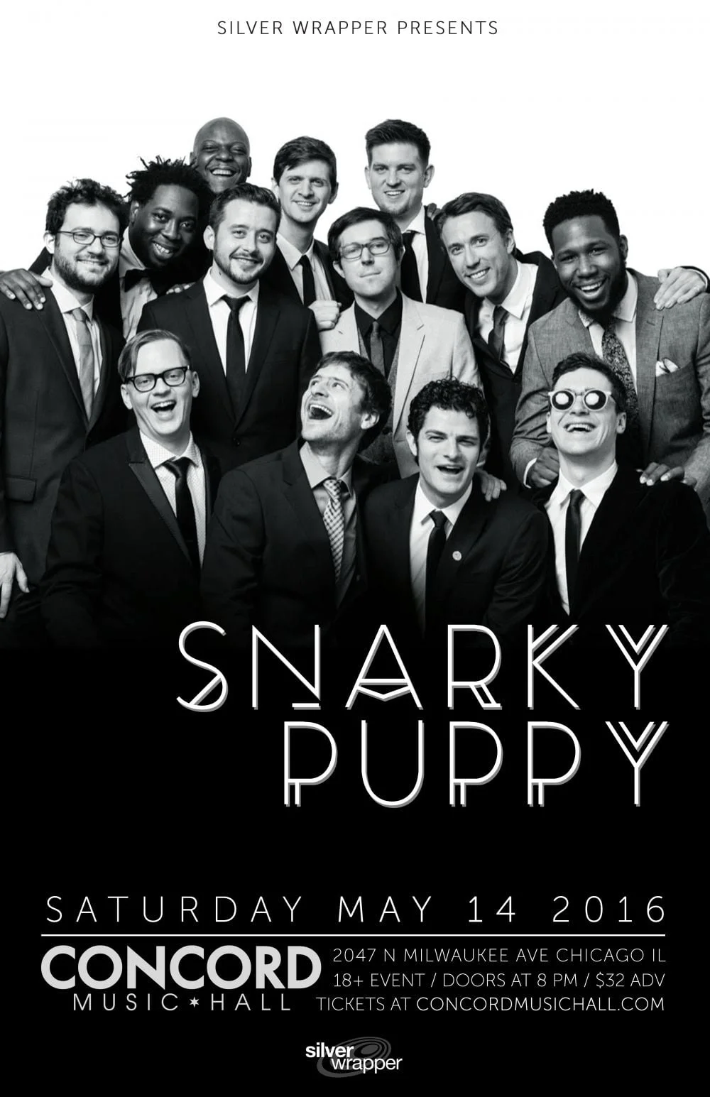 May 14: Snarky Puppy Saturday, May 14, 2016 8:00 PM 11:30 PM 20:00 23:30 Concord Music Hall 2047 N Milwaukee Ave Chicago, IL (map) Google Calendar ICS View fullsize Doors: 8:00PM | $32.00 | 18+Silver Wrapper Presents: Snarky Puppy BUY TICKETS