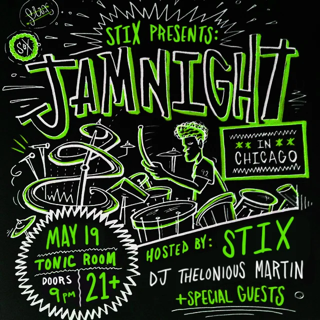 May 19: Stix Presents JAMNIGHT Thursday, May 19, 2016 9:00 PM 11:59 PM 21:00 23:59 Tonic Room 2447 N Halsted St. Chicago, IL (map) Google Calendar ICS View fullsize Doors: 9:00PM | $20.00 | 21+Stix Presents: JAMNIGHTHosted by STIXDJ: Thelonious Martin with Special Guests BUY TICKETS