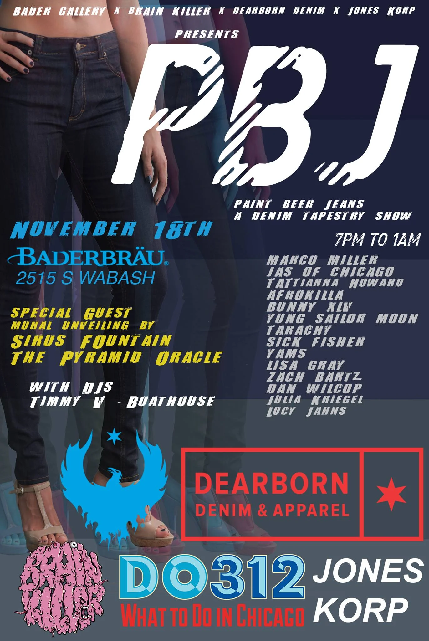 Hosted By: Bader Gallery, Brain Killer, Jones Korp, Dearborn Denim, Baderbrau Brewing Company, DO312