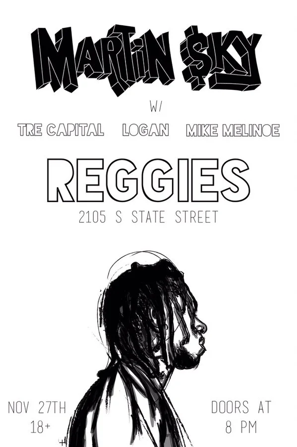 Nov. 27: Martin $ky with Logan, Tre Capital, Mike Melinoe Friday, November 27, 2015 8:00 PM 11:30 PM 20:00 23:30 Reggies 2109 South State St Chicago, IL (map) Google Calendar ICS View fullsize Doors: 8:00PM $10.00/$20.00 VIP Meet & Greet | 18+ BUY TICKETS