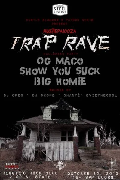 Oct. 30: OG Maco with ShowYouSuck Friday, October 30, 2015 9:00 PM 11:55 PM 21:00 23:55 Reggies Rock Club 2109 South State St. Chicago, IL (map) Google Calendar ICS View fullsize Doors: 9:00PM | $20 | 18+Hustlepalooza TrapRave Halloween Party BUY TICKETS