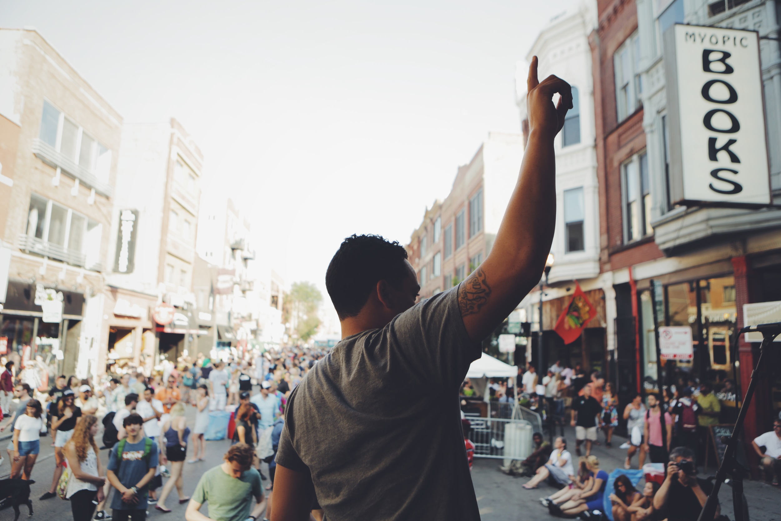 It's 5:30 PM on a Saturday in Chicago. Wicker Park, the Windy City's bustling (see also: overrun) neighborhood is holding its annual street fest and Milwaukee Avenue is packed. Vendors inside tents display posters and tie-dyed shirts, organic candles and paintings on old cassette tapes. The thousands of people that crowd together for the summer festivities are both old and young, both mindless browsers and scheduled planners. Some are arriving at the fest to see a particular live band, while others are just wandering and hoping to discover something new. Chicago six piece soul outfit The O'My's perform at Wicker Park Fest at 6:00 PM to a massive crowd. The band has been around the neighborhood since 2008. They can see the festival from their backyard. Although various members of the group have come and gone, founding members Maceo Haymes (lead vocalist/guitarist) and Nick Hennessey (backup vocalist/keyboardist) have been coming to this festival for years. When they arrive on stage, playing the festival for the first time, no longer part of the crowd, they are alive, beaming for the whole block to see.